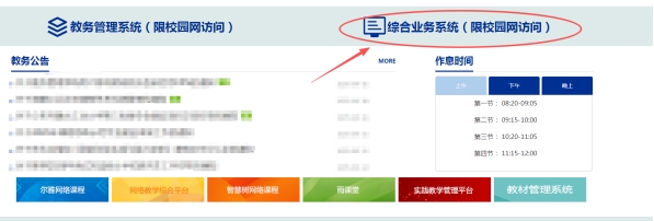 1.登录教务处首页,点击“综合业务系统”(参见图-1),使用“统一身份认证登录”进入系统。